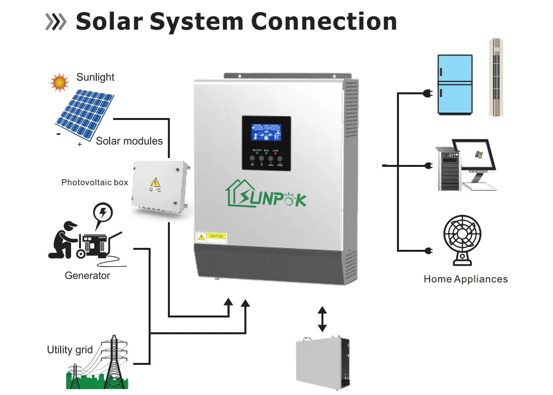 Omschakelaar met hoge frekwentie van het Sunpok5kw is de eenfasige van-net geschikt voor gebieden zonder macht, nomadische gebieden, communicatie basisstations, gebieden met onstabiele macht, eilanden, grensposten, toneeldiebeheersbureaus, kiosken, batterijpakken voor batterijfabrikanten, enz. met LEIDENE vertoning worden uitgerust, steunen USB/RS232/RS485/Bluetooth/Dry-Contact, compact ontwerp, en high-cost prestaties.